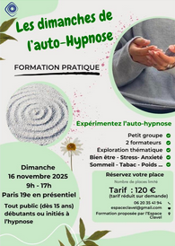 Prochaine session de formation "Les Dimanches de l’Auto-Hypnose", Dimanche 16 novembre 2025, sur une journée de pratique intensive.